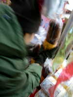 「超でかいフ菓子発見!」「手にとってみる」「そして返却(買えよ!)」